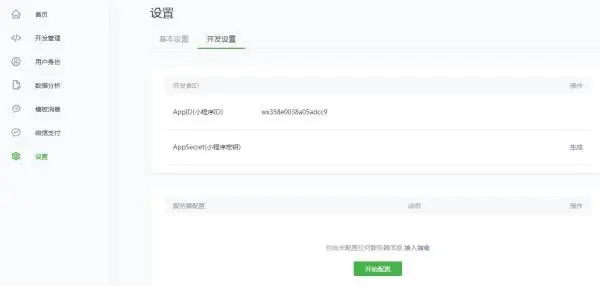 小程序后台设置页,点击生成,管理员验证二维码后,会随机生成AppSecret。请妥善保管好Appsecret,不要明文存储于服务器,AppSecret用于和微信服务器交互。比如获取用户的openid接口就需要用到.