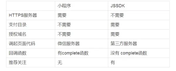 可以看到,小程序和JSSDK的微信支付非常类似,这里比较一下2者的区别: