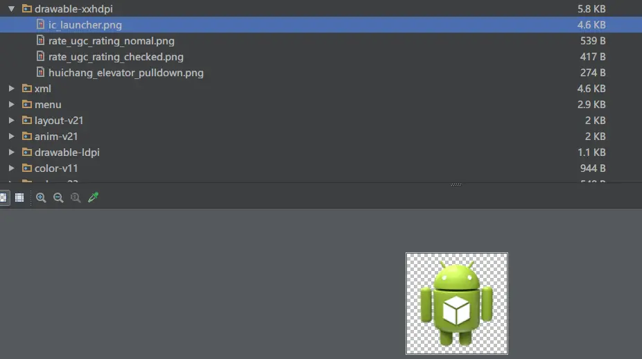 res目录存放的是资源文件。包括图片、字符串。raw文件夹下面是音频文件,各种xml文件等等。因为微信做了资源混淆,图片名字都不可读了。