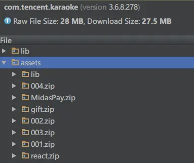 全名k歌中的assets目录下我就发现了大量的zip文件: