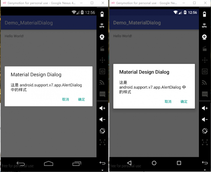 这个 V7 包中的 AlertDialog 在 Android 2.1 以上可以提供兼容性的 Material 风格 Dialog 。