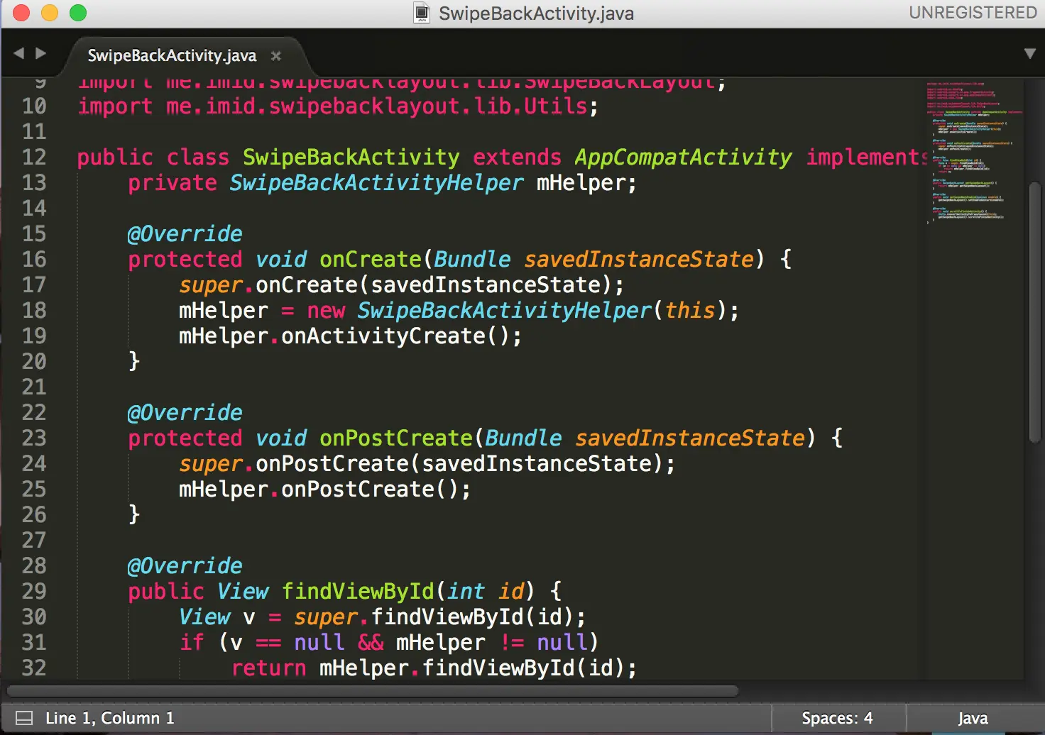 如何高效的read fuck source code,首先需要解决的是我们用什么工具看代码,推荐使用Sublime text看第三方开源库,用Android studio看完整项目。第三方开源库无须编译,直接看代码,使用Sublime text代码高亮整洁,看的很爽。效果如下: