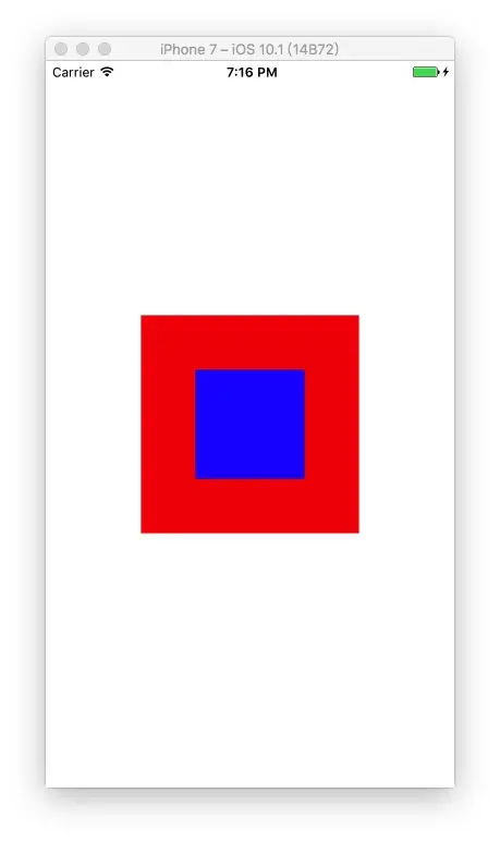 然后我们想要在这个小红方框的中间添加上一个蓝色的小方框。当然,我们肯定知道这很简单,直接加上一个子view就行了,但是这样做的,就失去了我们学习CALayer的意义。