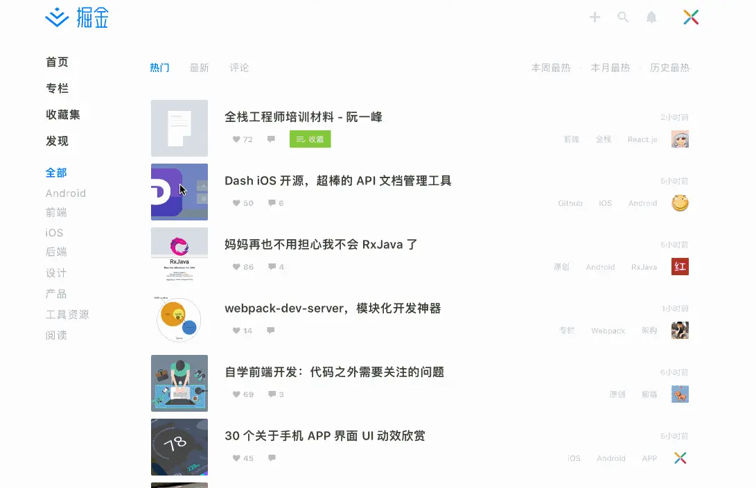 掘金有很多用户,收藏的文章数有几百篇,内容管理起来的确麻烦。为了改善内容管理的问题,我们做了收藏集这个功能。我们希望能先做好一个工具,每个用户都可以方便地创建收藏集,将文章整理到收藏集,并且可以是不是翻阅一下。
