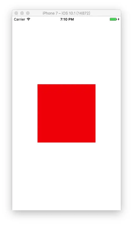 然后我们想要在这个小红方框的中间添加上一个蓝色的小方框。当然,我们肯定知道这很简单,直接加上一个子view就行了,但是这样做的,就失去了我们学习CALayer的意义。
