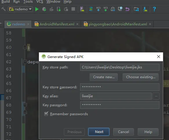 这里设置了debug和release签名都是同一个,你也可以设置为不同的签名。其中:storeFile file() 指定签名的路径,可以使用相对路径,把对应的签名放在项目跟对应的build同级目录下去引用storePassword 签名的密码keyAlias 签名的别名keyPassword 别名对应的密码