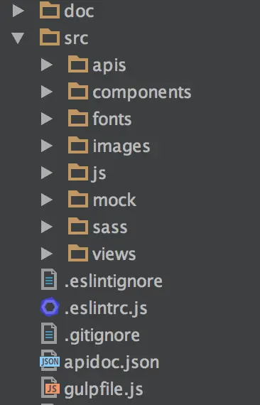 你们可能在总览的图会发现多了apis和mock文件夹,这个是我们promise封装接口层和前端本地mock层,由于每个团队的做法都不同,我就没有放在这次的脚手架里