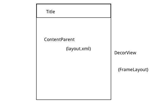 不难看出,一个DecorView可以非为两部分,第一部分就是上放的titleBar(标题栏),第二部分就是contentParent(内容区),我们的布局便是装载进contentParent区域。