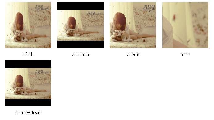这两个奇葩的属性是搞毛的呢?其实它们是为了处理替换元素(replaced elements)的自适应问题,简单的说,就是处理替换元素的变形(这里指长宽比例变形)问题。