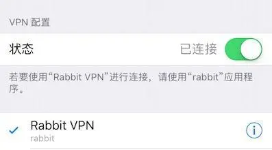 let manager = NETunnelProviderManager() let conf = NETunnelProviderProtocol() conf.serverAddress = "Rabbit" //任意值,显示在设置-VPN-Detial中 manager.protocolConfiguration = conf manager.localizedDescription = "Rabbit VPN" manager.enable = True //使VPN在系统中变为选中的状态