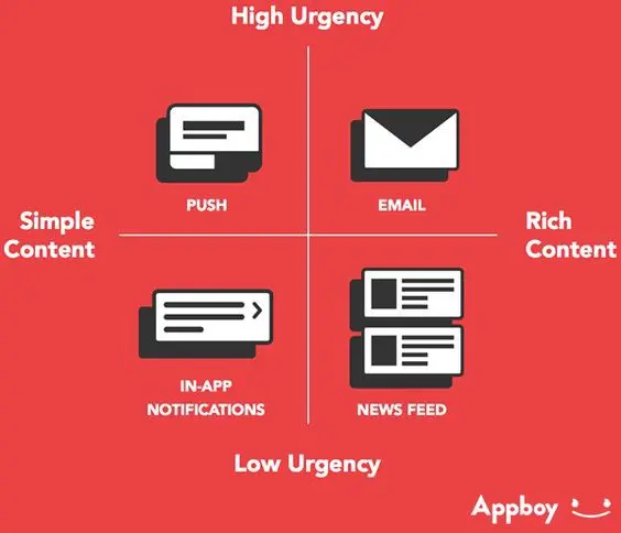 Tips: The best way to establish an effective mobile app messaging strategy is to use different message types — push notifications, email, in-app notifications, and news feed messaging. Diversify your messaging — your messages should work together in perfect harmony to create a great user experience.