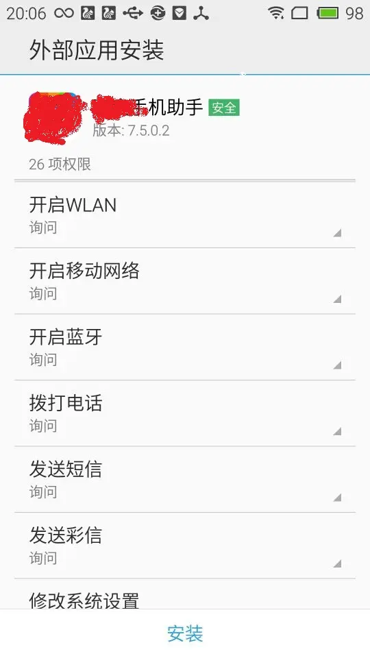 根据上面博客我们很清楚的知道,Android的权限其实就是为了程序之间更加的安全的访问,所以权限有等级之分,比如:Normal 低风险权限 、Dangerous 高风险权限等,虽然有这种安全意识,但是这些权限只会在安装的时候被询问一次,一旦安装之后,如果app申请了高风险权限的话,而且大部分用户在安装的时候很少去关注这些权限列表,再加上很多Android市场都有静默安装的功能用户更加感知不到任何权限提示,就这样app就有可能会在后台做一些对用户带来伤害的事情。如下图所示:
