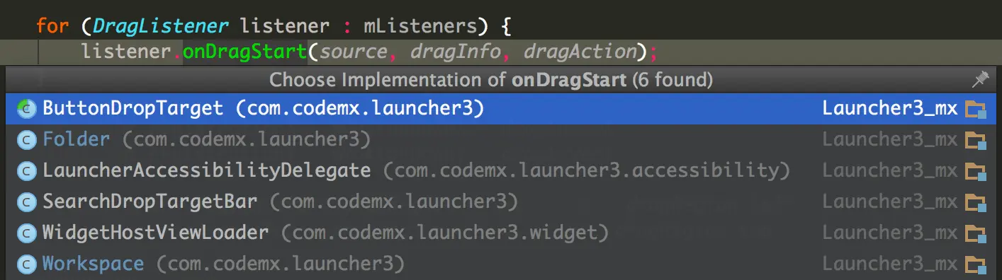 我们知道图标拖拽的触发条件是长按事件,因此我们要找到长按事件的过程,长按事件的代码在Launcher.java这个类中,代码如下: