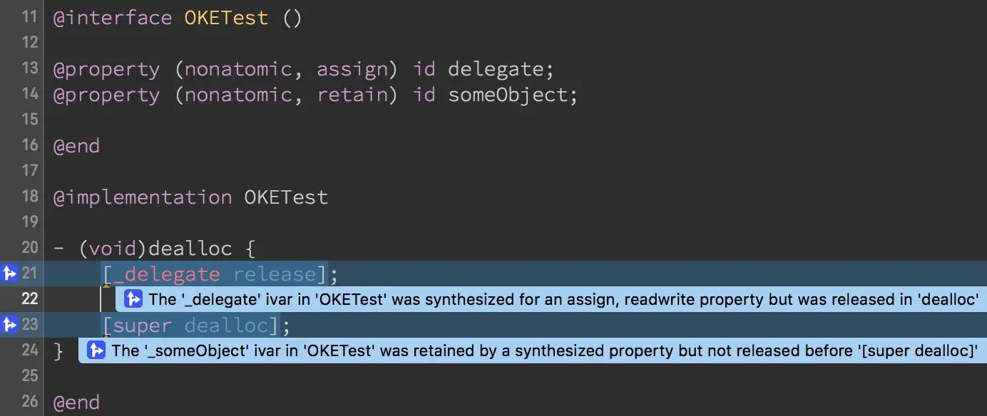 主要检查的是dealloc中内存的释放。这个功能来的有点晚,是一个给MRC使用的功能,在ARC基本普及的今天已经显得不是太重要了,当时没能雪中送炭,如今只能锦上添花了。