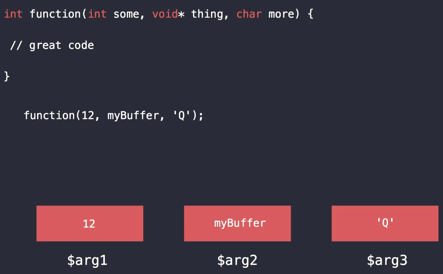 register还有一个非常有用的特性,当刚进入某一函数时,可通过register read $arg1 $arg2 ...读取函数的各个参数值,如下: