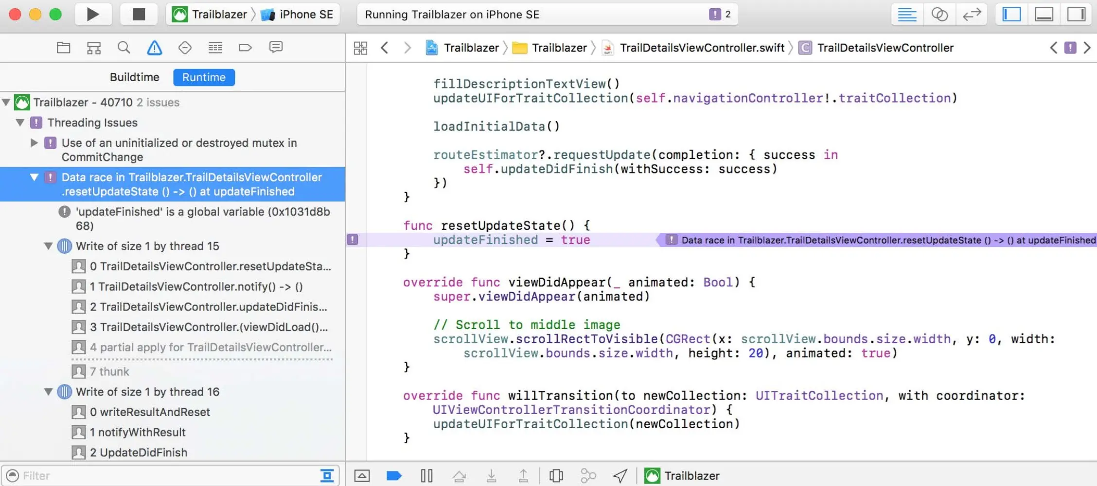 Xcode8新增了运行时问题的检查,如下: