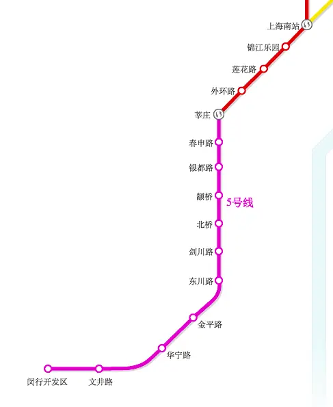 莘庄是1号线的起点站,也是5号线的终点站。从闵行开发区到春申路,都有乘客不断上车。只有挤上5号线,才能到莘庄换乘1号线。