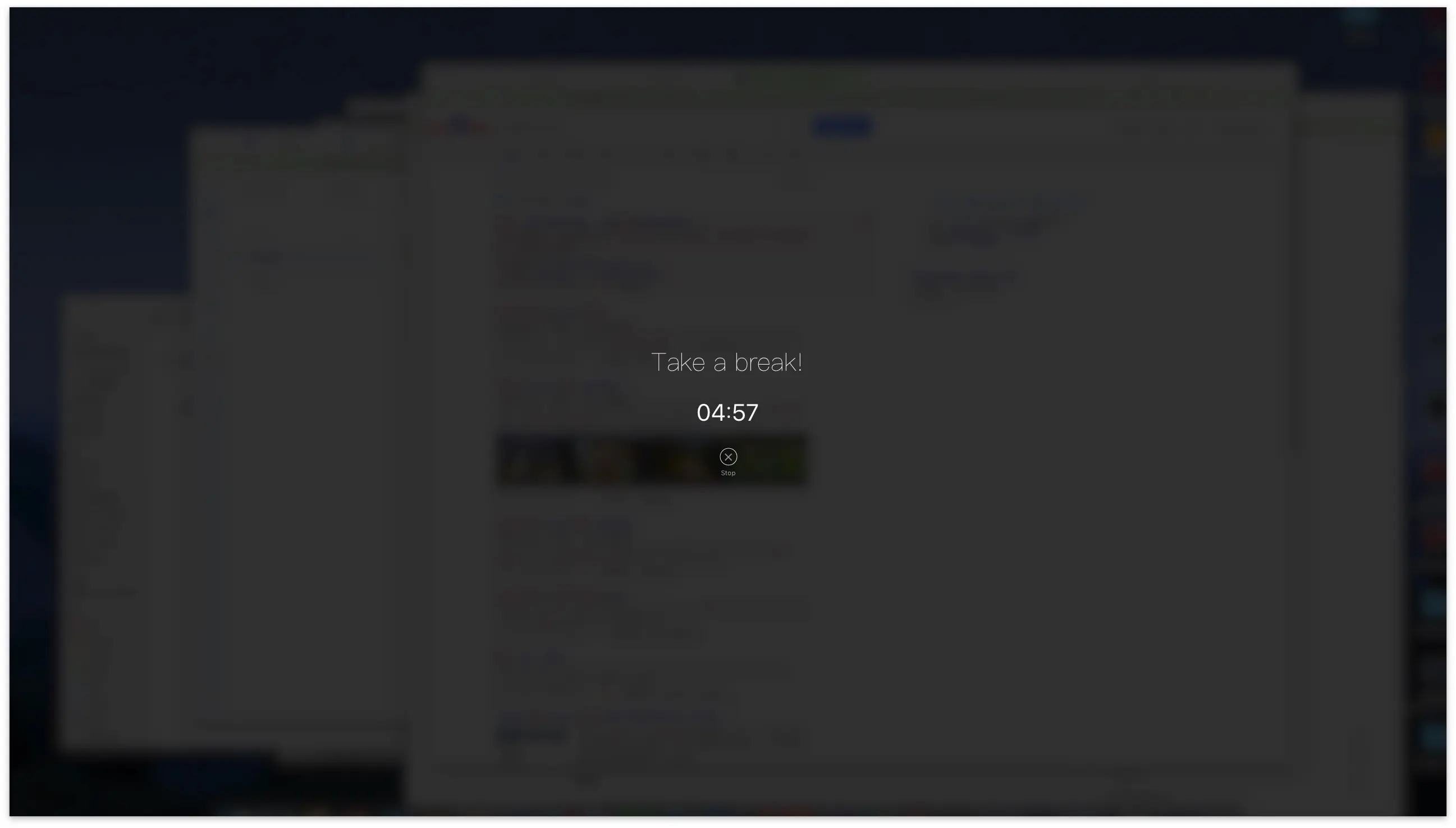 非常优雅的暂停工具。如果你用电脑用久了,很烦,想休息一下。那就用这个软件来防止你继续盯着电脑吧!高斯模糊很迷人。
