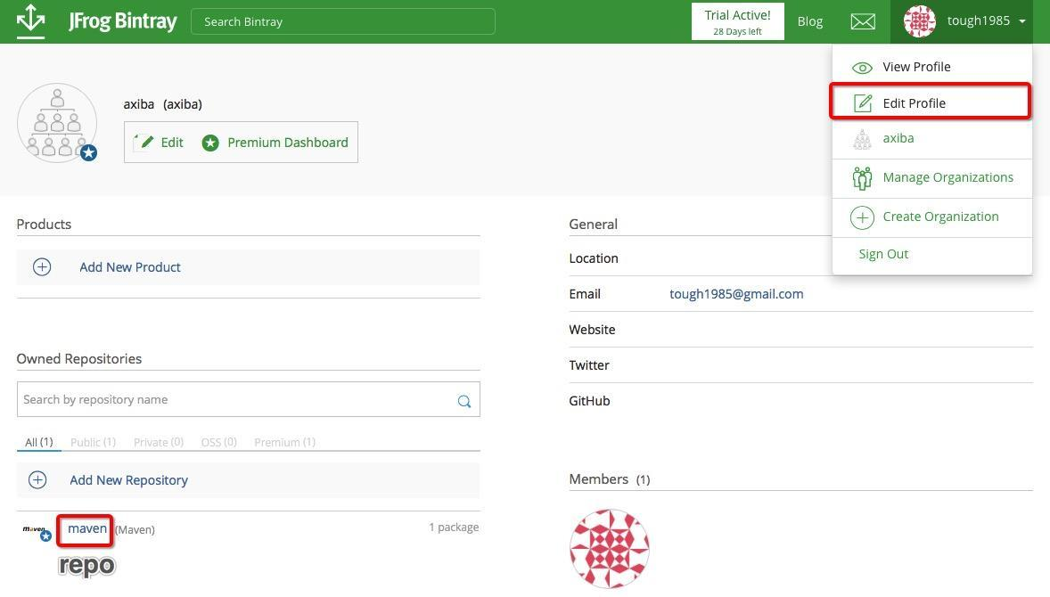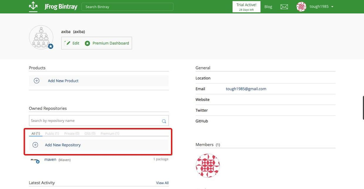 首先到Bintray官网上注册个用户,直接用github的账号就行。