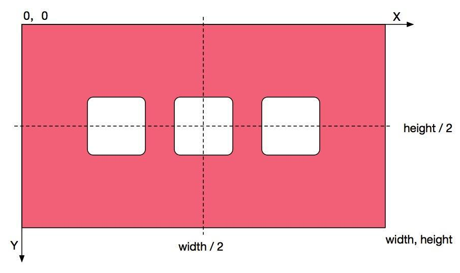 由于目标view是三个方块,也就是说第二个方块的中心应该和view的中心重合,所以我们从中心点出发,分别找到三个滑块的left和top坐标。