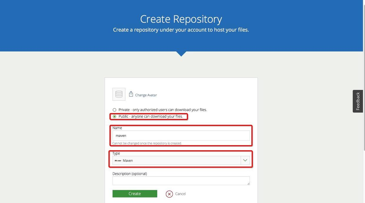 选择public;仓库名称你可以随意,但是要记住名字,后面要用;type选择Maven。