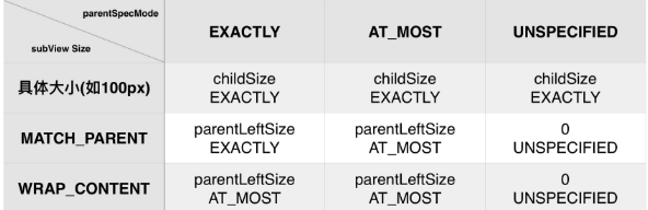 View 的MeasureSpec创建规则(getChildMeasureSpec方法的表格呈现)