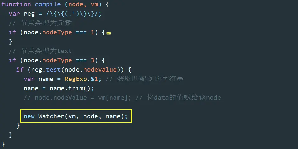 在编译HTML的过程中,会为每个与数据绑定相关的节点生成一个订阅者watcher,watcher会将自己添加到相应属性的dep中。