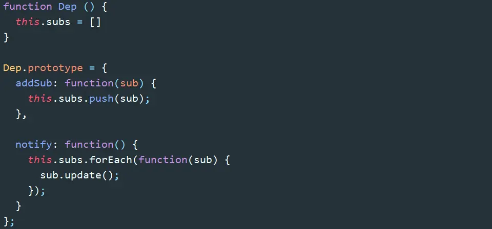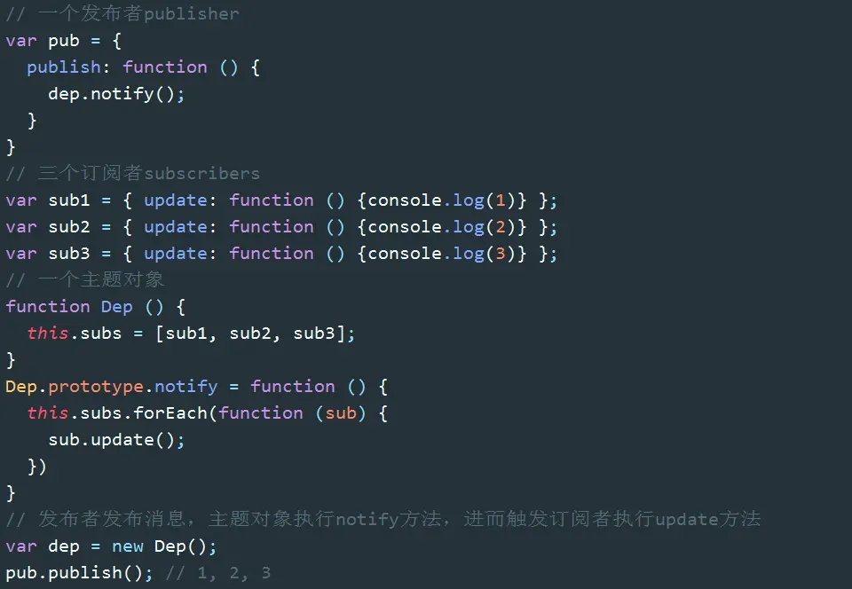 接下来我们要实现的是:发出通知dep.notify() => 触发订阅者的update方法 => 更新视图。