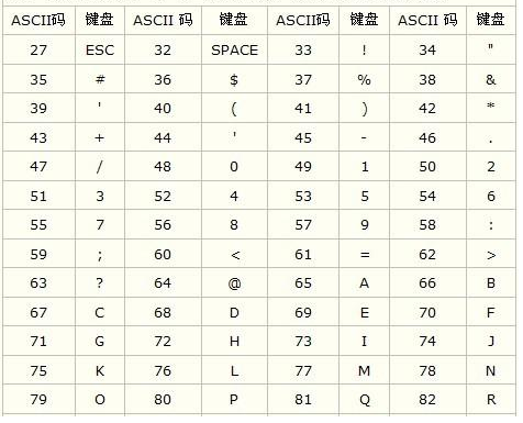 以下是部分ASCII码对照表: