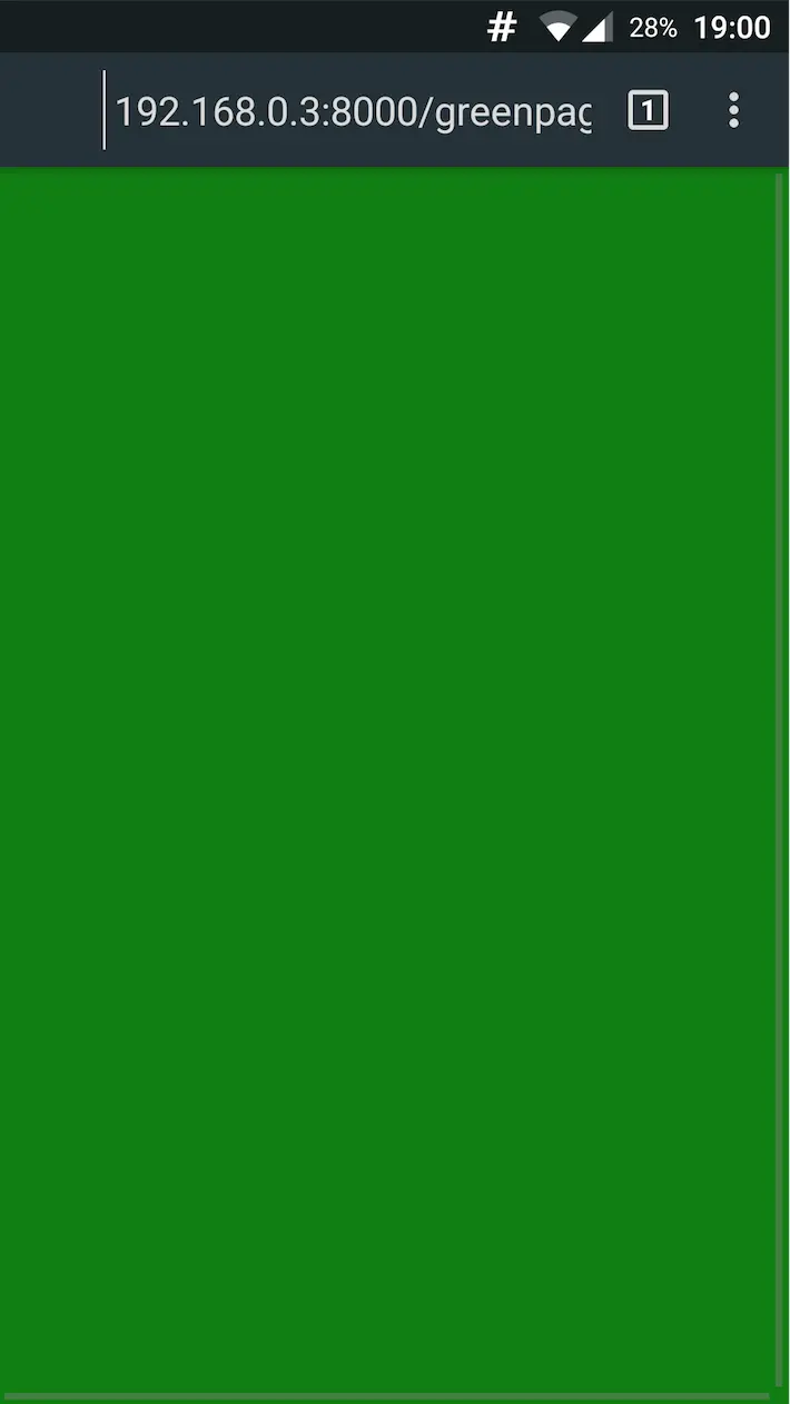 这篇文章将会使用一个纯绿色的网页来进行测试。网页加载完成以后,手机屏幕上绝大多数的区域是绿色的。这个时候,截取屏幕,并使用程序来识别这张截图。如果发现截图中有大面积的绿色区域,那就证明网页已经加载完成了。
