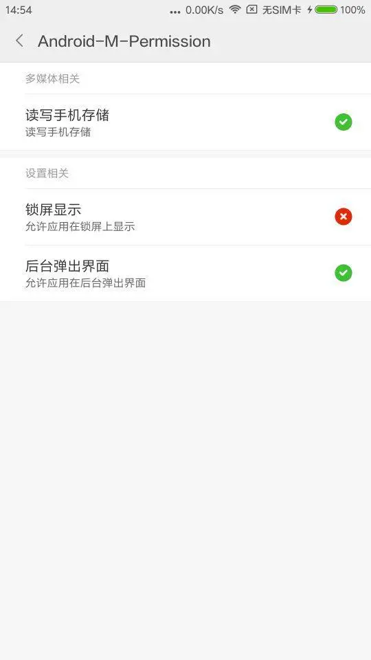 所有的封装和处理都是由开发中出现的各种问题而推动的。很明显,权限处理的代码缺点就是你不能处理一次就行了。由于用户可以在系统设置-应用设置里手动设置权限,如下图。
