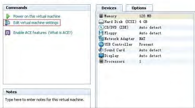 我们至少需要给每台虚拟机配置一个网卡以实现网络互连,并且需要给虚拟机UT-571和UT-574配置两块网卡,因为它们是路由器,分属于两个网段,配置虚拟机的过程如下所示:在虚拟机开机之前选择编辑选项