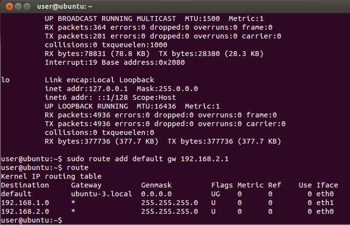 sudo ip route add 192.168.2.0/24 via 192.168.2.1