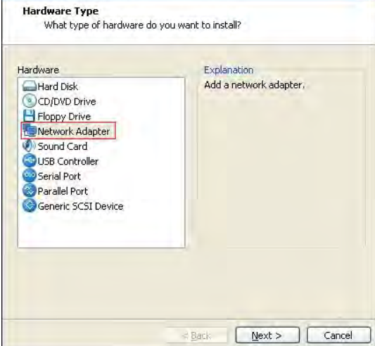 如果之前没有网卡,那么点Add添加网卡,然后next: