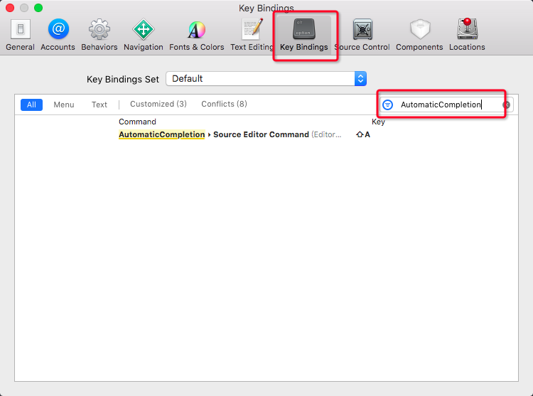 在用户偏好设置里面选择Key Bindings,输入AutomaticCompletion 使用自定义快捷键