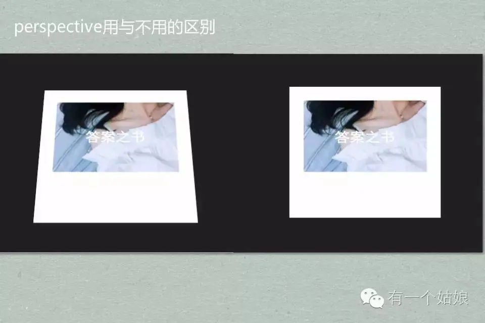图片看起来可能不太明显,该属性主要作用就是观察者与z=0平面的距离,使具有三维位置变换的元素产生透视效果。z>0的三维元素比正常大,而z<0时则比正常小,大小程度由该属性的值决定。默认情况下,消失点位于元素的中心,但是可以通过设置perspective-origin属性来改变其位置。< p="">