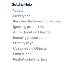 此外,在model relationships中支持RealmObject的子类和RealmList。