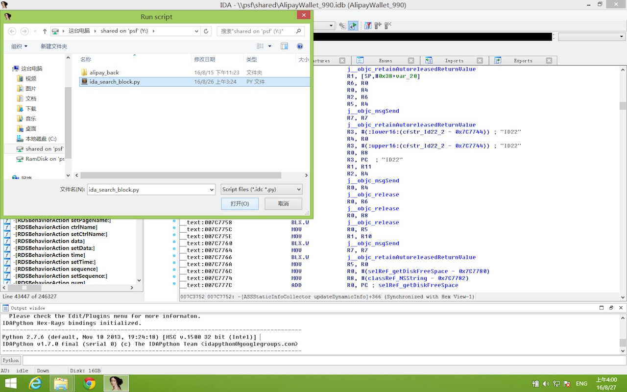 IDA提供的是Python的SDK,最后完成的脚本也放在仓库里search_oc_block/ida_search_block.py。