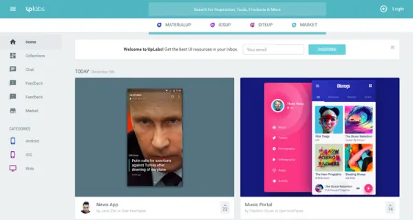 这个社区汇集了网站前端作品设计、 Android / iOS UI 设计等大量的资源。你可以通过关键词轻松的找到图片素材、Demo 等自己想要的资源,同时你也可以通过邮箱来订阅最新收集的设计作品。此外,UpLabs 还有一个很酷的集市功能。在集市里,你可以搜寻到最优秀的设计作品,同时你也可以将自己设计的作品上传到集市里,以付费或者免费的形式供大家下载。当然,如果你能力出众,还能轻松地挣点零花钱呢!