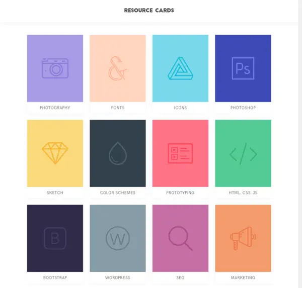 网站中包含了 12 大类,涉及图片、字体、图标、设计工具等设计师常用的免费资源,以及 HTML/CSS/JS、Bootstrap 等开发者需要的免费资源。其实,这个网站就是个专注于给设计师与开发者提供的导航站点。当然,分享的资源还是很给力的。