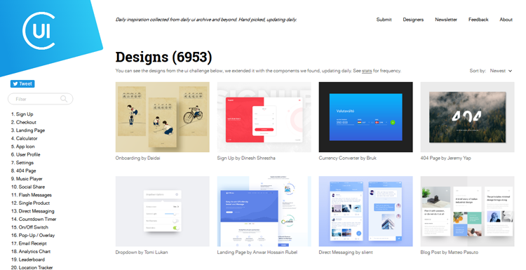 无论是从布局选择、色彩搭配,或是字体、UI 元素上,Collect UI 都采用了人工筛选的方式来保证社区的资源质量。同时,如果你在 Dribbble 上的粉丝够 800 ,还可以在 Collect UI 上申请联合编辑哦。
