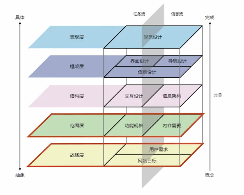 无论是交互设计师还是UI设计师,对战略层和范围层的理解很重要。战略层是什么呢?战略层就相当于你盖一座房子要知道这个房子是给谁盖得,要解决什么问题。而你作为房子的设计师当然要先去了解用户需求。同时也要利用自己的专业知识让让用户在这个房子里住的更舒服,更开心,这就是范围层说明了房子有哪些类型的房子,哪些功能能帮助用户住的舒服。
