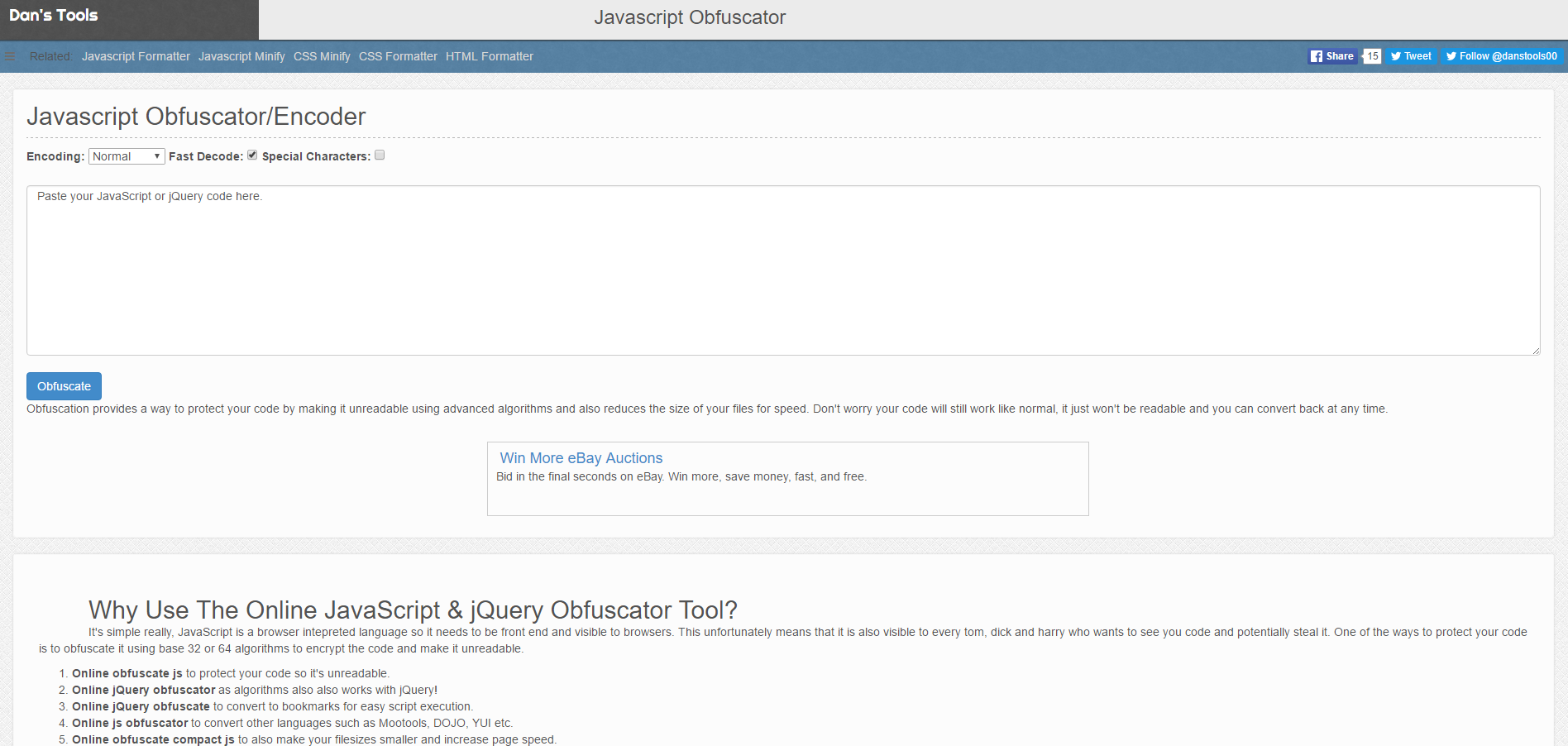 一个在线混淆工具,通过先进的算法,来混淆你的JavaScript代码,使其不可读。该工具还可以减小文件的大小,以便快速加载。