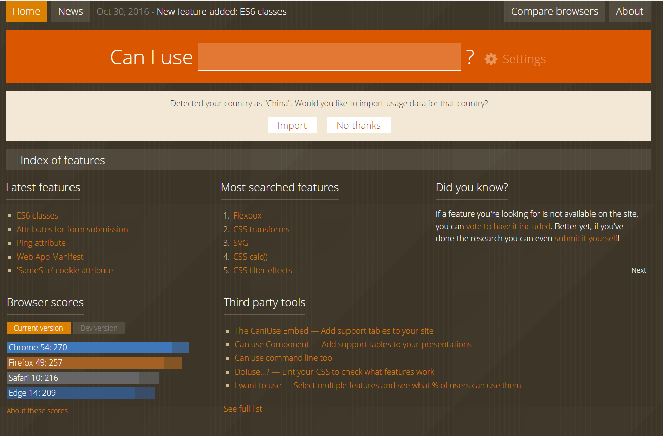 CAN I USE,相信每个前端同学都不陌生,查询浏览器兼容性的利器。