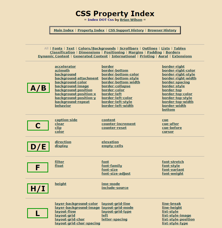 一份清单,按字母表顺序列出了每个CSS属性。