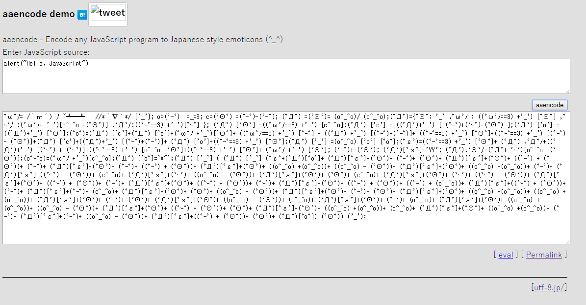 将JS代码转换成常用的网络表情,例如“(゚Θ゚)”。转换的代码并不复杂,可以在源代码里看到。