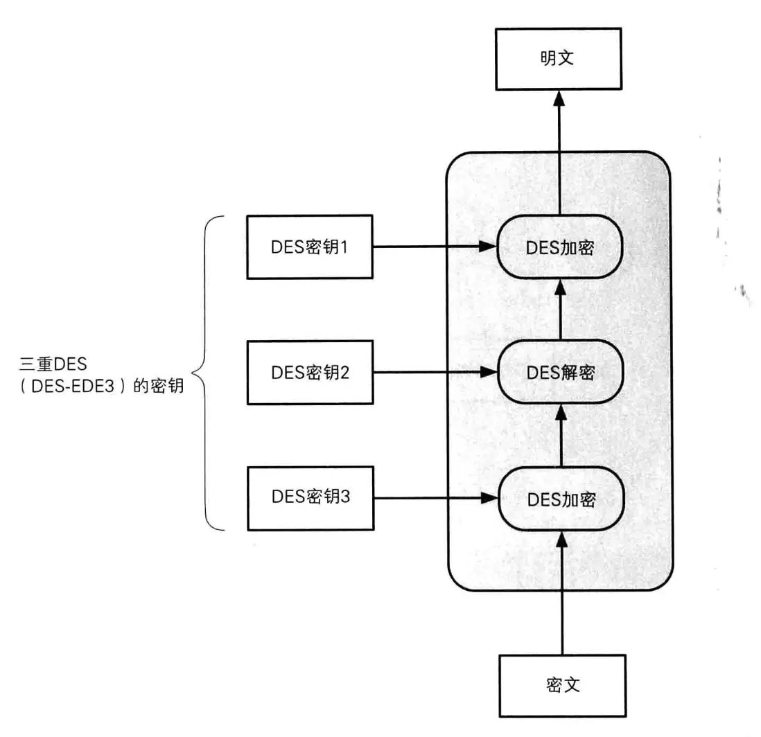 为了增强DES的加密强度,将DES重复3次所得的一种密码算法(注意加密的步骤是:加密-解密-加密)。示意图如下所示: