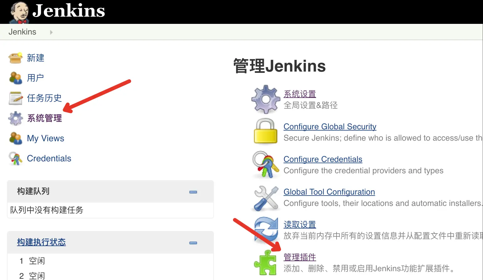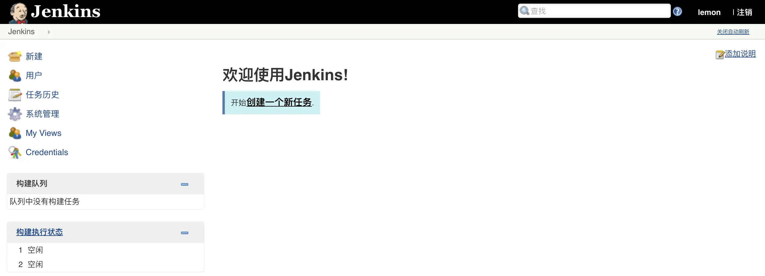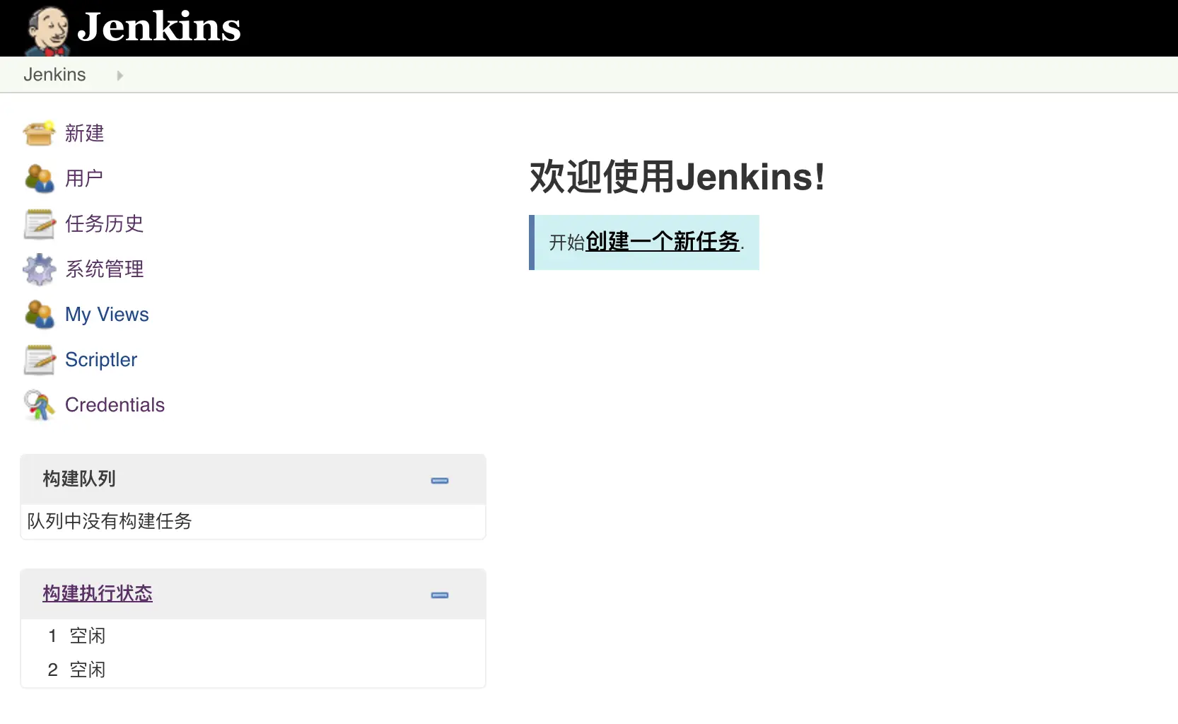 上面就是Jenkins初始化之后的控制台页面。通常进入Jenkins之后,要做的事情主要包括: