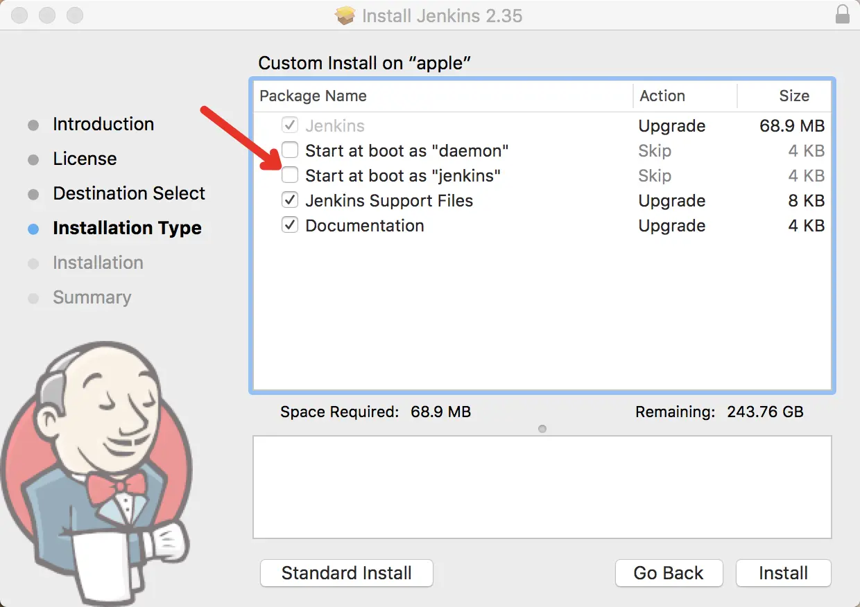 上面两种方式我都试过,其实从简单快捷上我更加推荐使用pkg安装包进行安装(如果习惯使用brew的同学请忽略这个)。但是在使用pkg包安装的时候建议自定义安装,如下图所示: