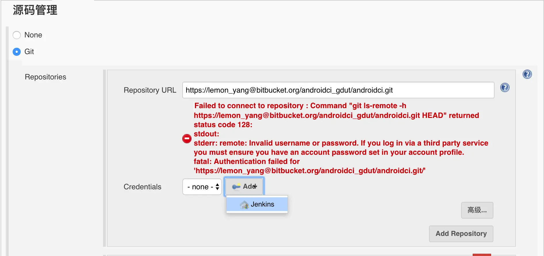 这里要注意的是,当我们绑定到类似gitlab、github、bitbucket之类的代码仓库的时候,访问这些仓库是需要权限的,也就是说需要绑定ssh key,这跟我们将代码clone到本地进行操作的道理是一样的。添加认证的操作如下: